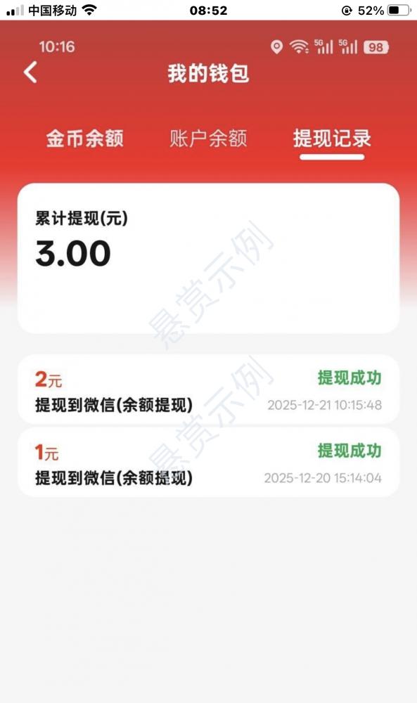 完成一元或以上提现截图