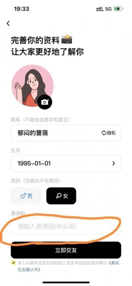 新人做单,首次注册,简单实名。限年满18周岁的女性用户做单。男生不要做单。做过觅友的不能做单